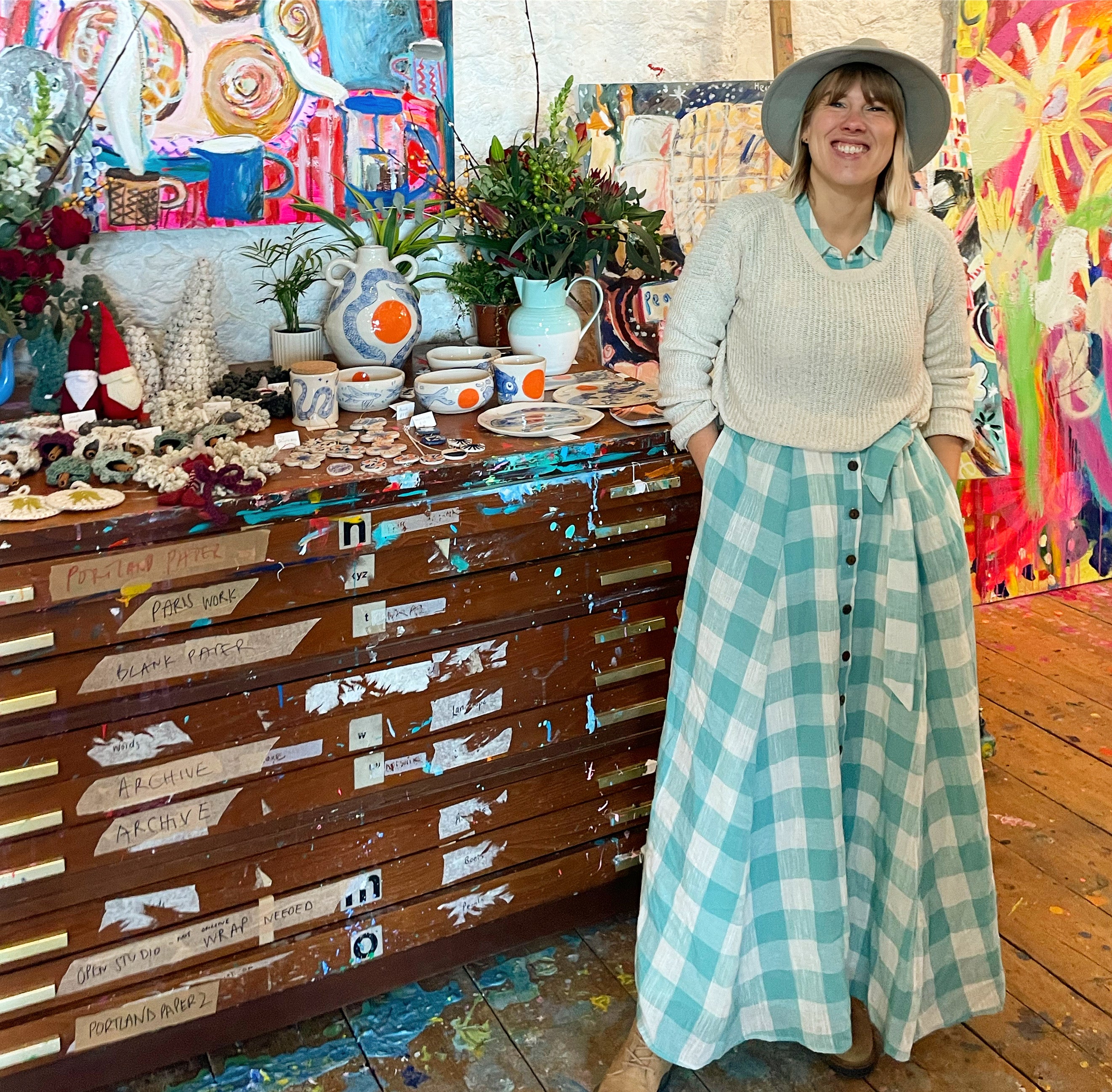 All of my pieces are thrown or hand built using a very smooth stoneware clay with very little to no grog, this means the clay presents a brilliantly smooth surface for painting and a pale and uniform colour. I love to have the pale buff colour of the clay contrasting with the bright colours of the underglaze and glazes. For these pieces I have used a single colour of rich cobalt blue, called Kings Blue, just diluted in various amounts to allow varying tones of the same colour to create an image. Each piece begins with a pencil sketch directly onto the surface of the bisque fired clay, which is then painted over with underglazes and/or oxides using Italian watercolour brushes from Florence, and then coated with a clear glaze to seal the piece. I love to make use of the traditional blue of delft pottery and chinese porcelain, contrasting against a bright orange, this combination of cobalt blue and bright colours is also seen in Portuguese traditional hand painted pottery. I like to focus more on a single creature, or object and a single circle of rich orange.